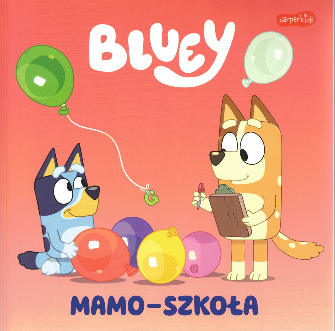 Bohaterowie książki znani z filmów animowanych produkcji BBC pt.: Bluey.